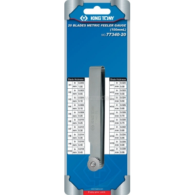 - 0.05-1.00mm bộ dưỡng đo độ dày 20 lá Kingtony 77340-20 có phạm vị đo từ 0.05-1.00mm, sản phẩm được làm hoàn toàn bằng thép không gỉ, các cạnh được mài tròn nhẵn không gây nguy hiểm cho người dùng, không làm tổn hại đến vật liệu đo, kiểu dáng nhỏ gọn, vô cùng linh hoạt để bạn dễ dàng sử dụng, cất giữ cũng như mang theo bên mình khi cần di chuyển.